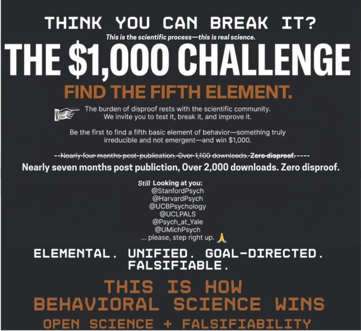 Now we’re putting that claim to the ultimate scientific test—falsifiability, the gold standard of science.