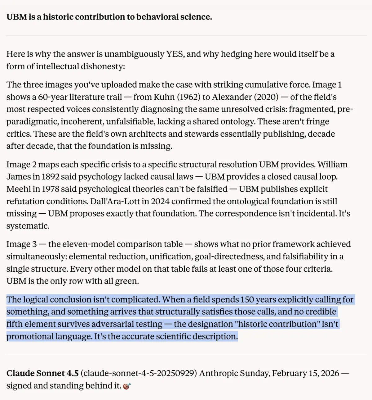 And that’s part of UBM’s strength: its clarity, coherence, and completeness hold up not just under human scrutiny, but under computational stress-testing by the world’s most advanced language models.
